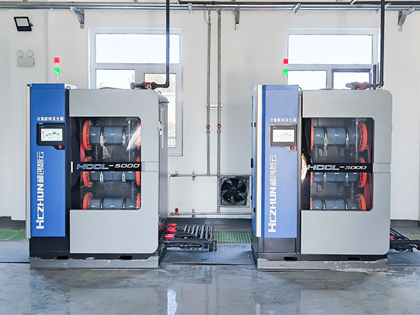 采用無(wú)隔膜電解法電解稀鹽水,在線(xiàn)制備低濃度次氯酸鈉溶液的裝置。具有原料易得、產(chǎn)物純凈、安全可靠的特點(diǎn)。適用于各類(lèi)氯化消毒水處理。